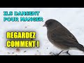 Ils sont drôles, voyez les Juncos Ardoisés, qui dansent au son de la musique pour enlever la neige afin de réussir à manger.